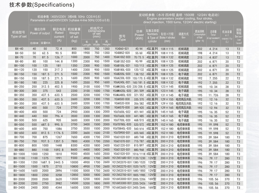 三、玉柴發(fā)電機組參數: