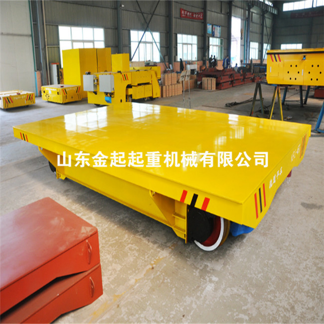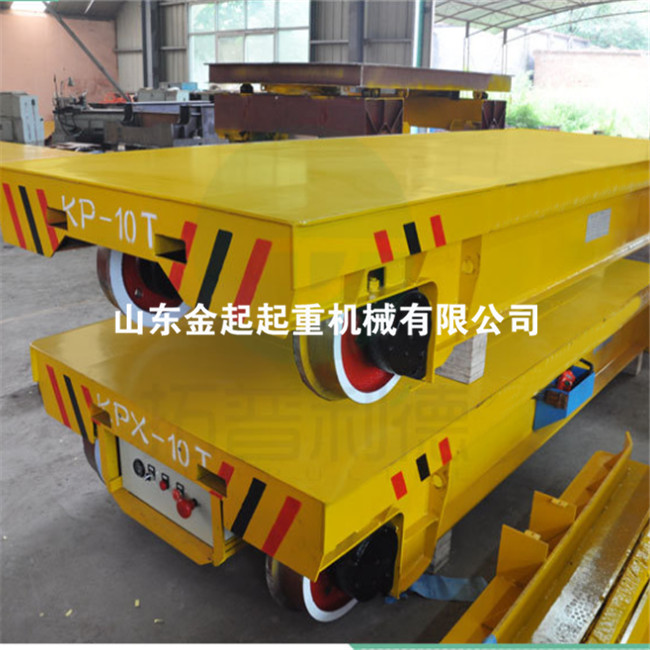 電動平車,又稱電動平板車、電平車、臺車、過跨車、電動軌道車、地爬車等,是一種廠內(nèi)有軌電動運輸車輛,首先它是一種軌道型運輸車輛,需要在地面上鋪設軌道,軌道一般為工字型面接觸道軌;其次它是電驅(qū)動車輛,在電機減速機驅(qū)動下自動運行,再次它是一種平板車,臺面平整無廂蓋,特殊情況下也可以是非平面但無廂蓋,車體無方向盤只有前進后退方向(即使轉(zhuǎn)彎也城靠軌道轉(zhuǎn)彎)。此種車輛具有結(jié)構(gòu)簡單、使用方便、承載能力大、不怕臟不怕砸、維護容易、使用壽命長等特點,因其方便、壯實、經(jīng)濟、實用、易清理等諸多優(yōu)點,成為企業(yè)廠房內(nèi)部及廠房與廠房之間短距離定點頻繁運載重物的**運輸工具。