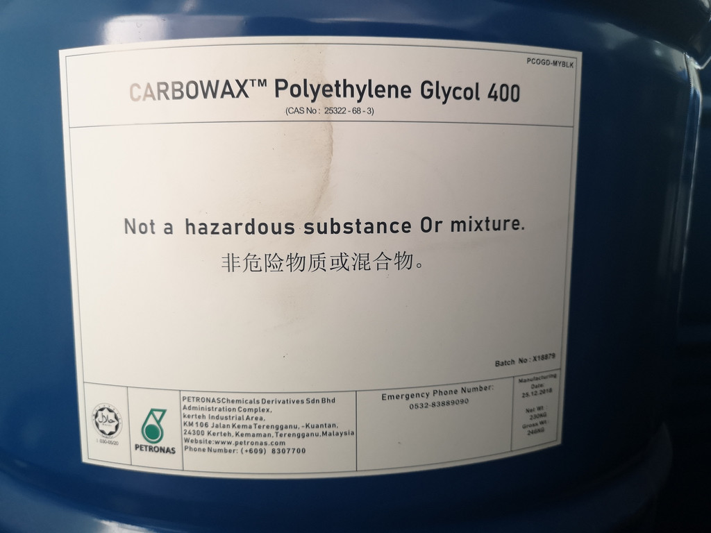 系列產(chǎn)品無毒、無刺激性,味微苦,具有良好的水溶性,并與許多有機物組份有良好的相溶性。它們具有優(yōu)良的潤滑性、保濕性、分散性、粘接劑、抗靜電劑及柔軟劑等,在化妝品、制藥、化纖、橡膠、塑料、造紙、油漆、電鍍、農(nóng)藥、金屬加工及食品加工等行業(yè)中均有著極為廣泛的應用。聚乙二醇和聚乙二醇脂肪酸酯在化妝品工業(yè)和制藥工業(yè)中的應用很廣泛。由于聚乙二醇兼有很多優(yōu)良的性質(zhì): 水溶性、不揮發(fā)性、生理惰性、溫和性、潤滑性和使皮膚潤濕、柔軟、有愉快用后感等?蛇x取不同相對分子質(zhì)量級分的聚乙二醇改變制品的粘度、吸濕性和組織結構。相對分子質(zhì)量低的聚乙二醇(Mr<2000)適于用作潤濕劑和稠度調(diào)節(jié)劑,用于膏霜、乳液、牙膏和剃須膏等,也適用于不清洗的護發(fā)制品,賦予頭發(fā)有絲狀光澤。相對分子質(zhì)量高的聚乙二醇(Mr>2000)適用于唇膏、除臭棒、香皂、剃須皂、粉底和美容化妝品等。在清洗劑中**也用作懸浮劑和增稠劑。在制藥工業(yè)上,用作油膏、乳劑、軟膏、洗劑和栓劑的基質(zhì)。市售符合食品和藥物使用的聚乙二醇(如Polyethylene Glycol NF,Dow chemical Co.)更適于化妝品使用。甲氧基聚乙二醇和聚丙二醇的應用與聚乙二醇相近。