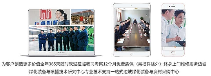 目前,我公司生產(chǎn)的噴播機系列、噴涂機系列等產(chǎn)品已在全國各地礦山、隧道、邊坡、水電工程、地鐵和市政基礎設施建設中廣泛應用,并出口到美國、加拿大、日本、馬來西亞、印尼、越南、巴基斯坦及臺灣、香港等地區(qū)。并得到美國Flexterra HP-FGM纖維材料生產(chǎn)商的一致認可并與我公司簽訂長期合作協(xié)議。恒睿人不斷改進,新開發(fā)的客土噴播機,給綠化噴播行業(yè)帶來了一次技術性革命,成為國內(nèi)噴播機發(fā)展的前沿技術,為國內(nèi)邊坡綠化施工帶來了一次新的技術。