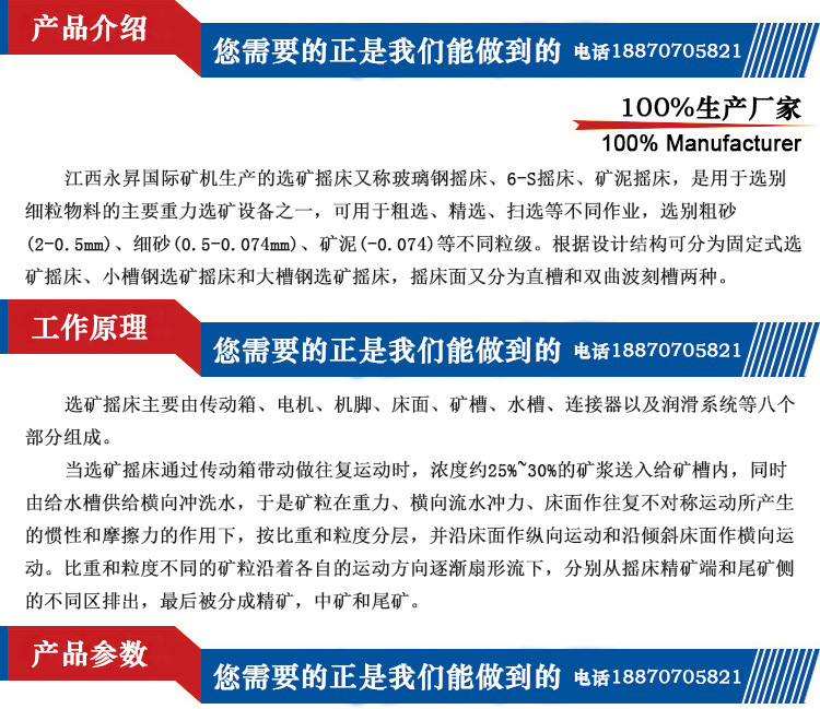 江西永昇重力選礦設(shè)備廠家供應(yīng)6S玻璃鋼選礦搖床