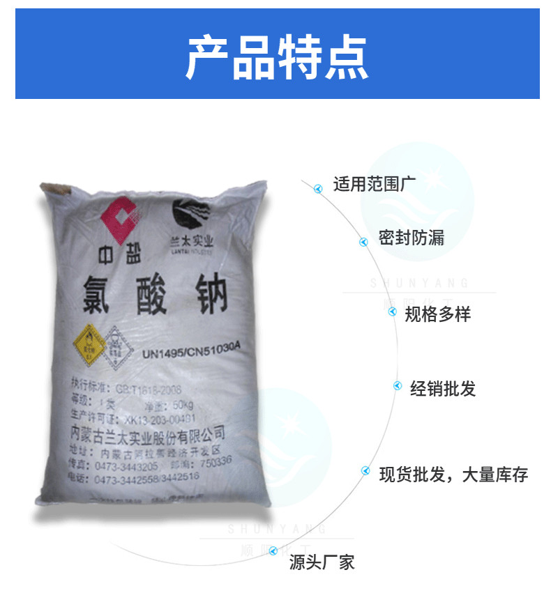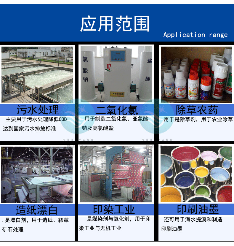 用于制造二氧化氯及高氯酸鹽,用作除草劑、印染氧化劑等