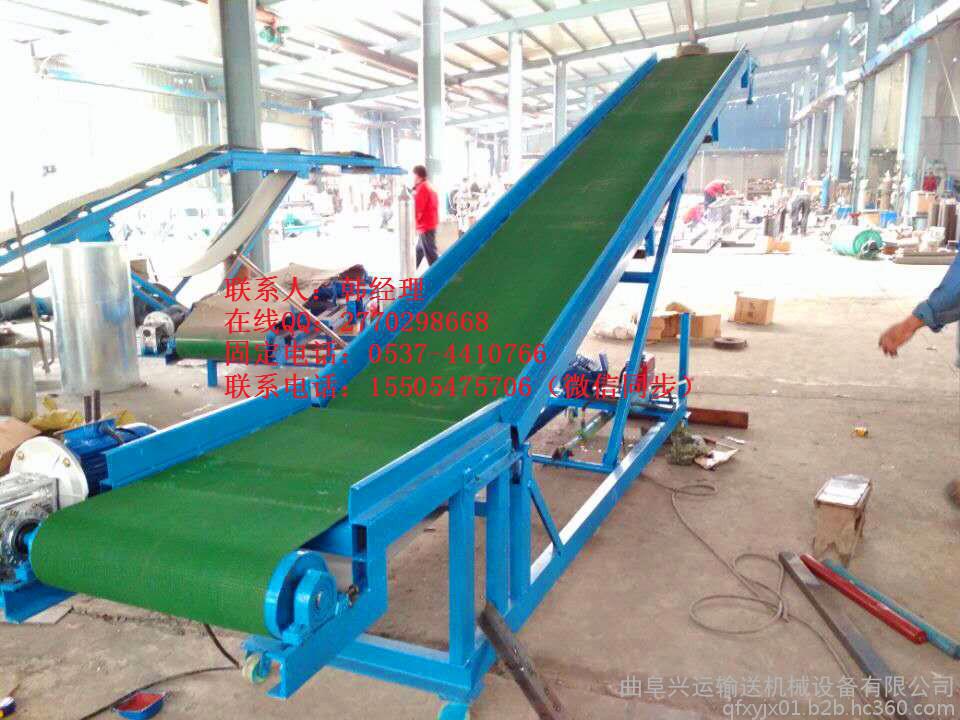 3、移動式皮帶輸送機也可被用了成品袋裝貨物的輸送,如已經(jīng)包裝好的成袋的糧食等在裝車的時候使用,提高了裝車效率節(jié)省了人力資源。