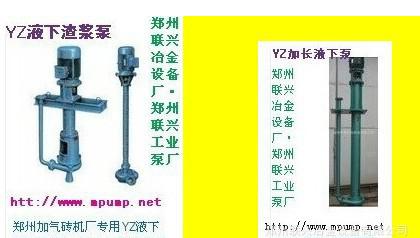 鄭州聯(lián)興冶金設(shè)備有限公司·鄭州聯(lián)興工業(yè)泵廠科技創(chuàng)新,產(chǎn)品升級(jí),創(chuàng)新推出高效節(jié)能YZ型液下渣漿泵,電廠粉煤灰·廢棄礦渣綜合利用蒸壓加氣塊輕質(zhì)磚廠配套液下泵,自吸式立式渣漿泵,加長(zhǎng)軸液下渣漿泵 灰漿泵 礦漿泵 泥漿泵 砂漿泵,蒸壓加氣塊輕質(zhì)磚機(jī)配套必備YZ型高效耐磨自吸立式灰礦漿上料泵、給料泵;聯(lián)興泵業(yè)可根據(jù)客戶現(xiàn)場(chǎng)工況定制提供多種規(guī)格加長(zhǎng)軸YZ型液下渣漿泵。