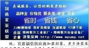 四川省市各地區(qū) 石油、工礦、選煤選礦廠及水利電力、鋼鐵工礦與化工防腐企業(yè)所需選煤選礦渣漿泵,壓濾機(jī)專用喂料渣漿泵,加氣混凝土、電廠粉煤灰蒸養(yǎng)磚、免燒輕質(zhì)磚等新型輕質(zhì)墻體材料建材廠生產(chǎn)線設(shè)備配套**選擇·耐磨蝕高效節(jié)能YZ型液下渣漿泵供應(yīng)廠家鄭州聯(lián)興冶金設(shè)備有限公司·鄭州聯(lián)興工業(yè)泵廠,官方網(wǎng)站://www.mpump.net;在線客服:QQ:874560408 廠家服務(wù)熱線:0371——63055129.渣漿泵品種齊全,性能優(yōu)良,價(jià)格合理,貼心服務(wù);歡迎新老客戶咨詢選購。免費(fèi)代客設(shè)備設(shè)計(jì)、選型,解決生產(chǎn)、使用、維護(hù)過程中遇到疑難技術(shù)問題;長(zhǎng)期廠價(jià)優(yōu)惠供應(yīng)原廠**配件,解除客戶的一切后顧之憂,真正體現(xiàn)合作共贏的目的!不用不知道,用過忘不掉;一朝牽手,永遠(yuǎn)是朋友!