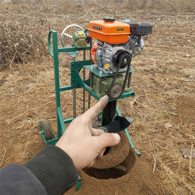 3.挖到預(yù)定深度后,緩慢提起挖坑機(jī),在挖坑機(jī)鉆頭離開地面后, 松開工作開關(guān),完成挖坑過(guò)程。植樹挖坑機(jī)是一種以汽油機(jī)為動(dòng)力的便捷式挖坑工具,該機(jī)器體積小,動(dòng)力大、方便攜帶、適合植樹造林、果園種植、大棚建設(shè)、沙漠綠化等。這是一款非常適合我國(guó)地形狀況的機(jī)器,目前發(fā)展、銷售、使用空間巨大。挖坑機(jī)種樹、打樁一機(jī)多用,安全可靠,產(chǎn)銷一體化,量大從優(yōu)。質(zhì)量有保障。