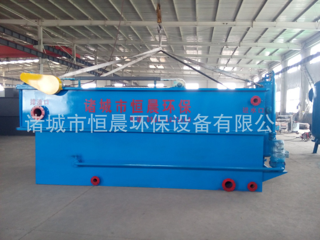 溶氣裝置產(chǎn)生大量的溶氣水,釋放器通過(guò)減壓的方式將溶氣水釋放出來(lái),水中會(huì)產(chǎn)生大量微小氣泡,懸浮物吸附在小氣泡上,與小氣泡一起緩緩的上升到水面,在水面上會(huì)形成大量的浮渣,在刮板裝置的作用下,將懸浮的浮渣進(jìn)行刮起,并存放在污泥存放裝置里,處理后的水從底部的溢流裝置進(jìn)入到下個(gè)環(huán)節(jié)中。