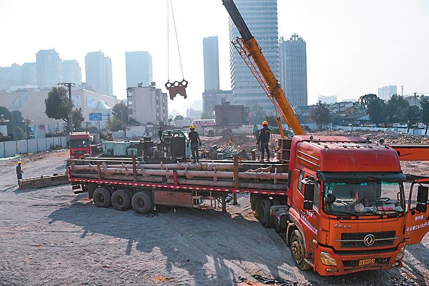 2月12日,在聶耳和國(guó)歌傳習(xí)中心項(xiàng)目工地,工人為大規(guī)模施工做前期準(zhǔn)備。為打造講好“聶耳和國(guó)歌的故事”主陣地,玉溪市規(guī)劃建設(shè)聶耳和國(guó)歌傳習(xí)中心。項(xiàng)目含國(guó)歌傳習(xí)館、聶耳市集、聶耳書(shū)院、聶耳驛站、聶耳劇社、號(hào)角樓、國(guó)歌廣場(chǎng)七大板塊,目前已完成地質(zhì)勘探。(崔永紅)