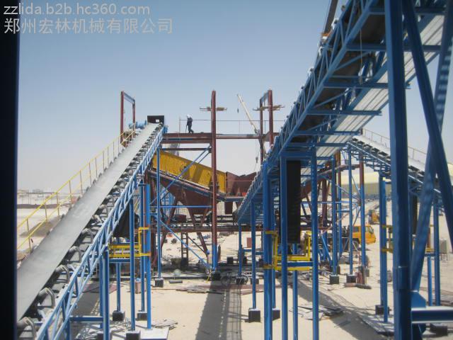 槽型帶式輸送機(jī)的上段輸送帶利用槽形托輥支撐,成為上分支或承載段或重段。下段輸送帶由平托輥(或V型托輥)組支撐,稱為下分支或回程段或空段。根據(jù)實(shí)用需要,輸送機(jī)上下分支都可用來完成輸送工作,帶式輸送機(jī)還設(shè)有進(jìn)料槽、導(dǎo)料槽、卸料溜槽以實(shí)現(xiàn)對裝在和卸料時(shí)的物料導(dǎo)流。 皮帶輸送機(jī)使用效果圖
