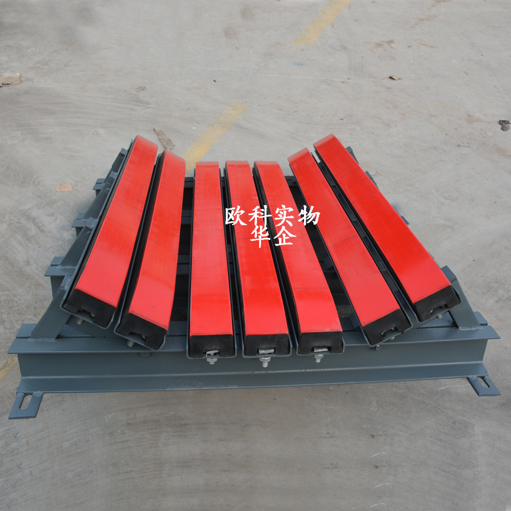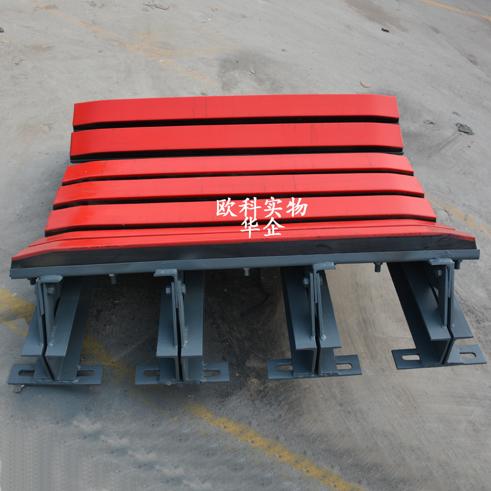 緩沖床由兩部分組成,包括耐用美觀的緩沖條還有支撐力度強的緩沖支架。緩沖條在工作中起著關(guān)鍵性的作用,礦下用的緩沖床必須用防靜電抗阻燃的,所以對緩沖條的要求特別高,采用加厚聚乙烯層,應(yīng)用更廣泛,產(chǎn)品更耐用。聚乙烯表層的前后端均成弧形,從而保證了送帶通過時的順滑。性能優(yōu)良的特種橡膠層有效吸收物料下落時的沖力。光滑的UHMW聚乙烯表面將送帶與緩沖條的摩擦降至。緩沖床的支架采用牢固的鋼支架。