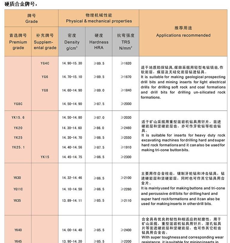 硬 度(HRA)≥92。