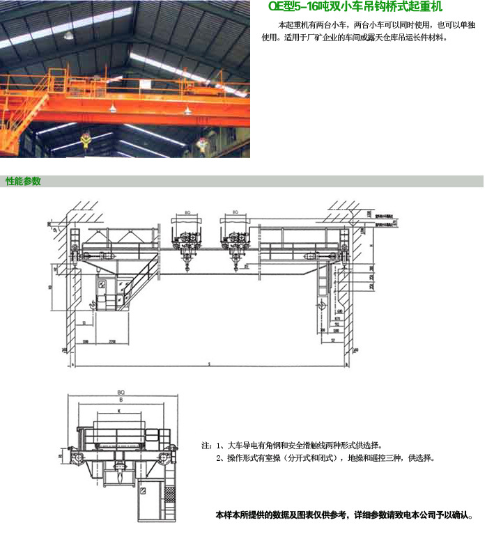 本起重機(jī)有兩臺小車,兩小車可以同時使用,也可以單獨(dú)使用,適用于廠礦企業(yè)的車間或露天倉庫吊運(yùn)長件材料(木材,紙筒,管封,棒材)。