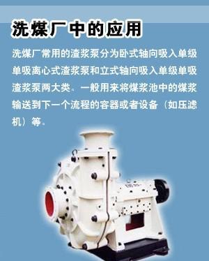 8) 煤碳工業(yè)、煤化工中的腐蝕性液體、煤漿的輸送;洗選煤廠配套用泵