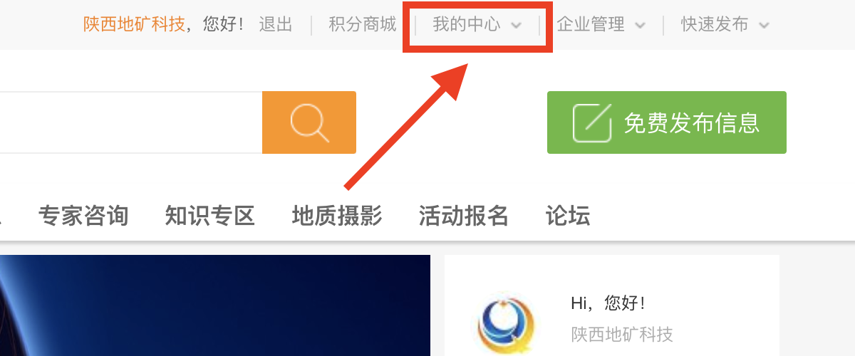 1、網(wǎng)站首頁(yè)頂部菜單欄點(diǎn)擊“我的中心”。