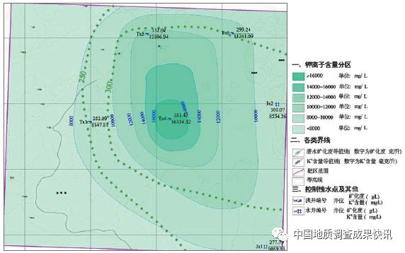 摘要:在野外地質(zhì)調(diào)查基礎(chǔ)上,結(jié)合高程實(shí)地測(cè)量和室內(nèi)化學(xué)分析,恢復(fù)了羅布泊礦區(qū)三維高程模型和地下流場(chǎng)模型,對(duì)羅布泊西部庫(kù)魯克塔格山至孔雀河下游含鉀鹵水分布范圍和地球化學(xué)特征進(jìn)行了調(diào)查研究,開展了1∶5萬水文地質(zhì)填圖400km2,圈定孔雀河下游羅布泊新湖區(qū)一帶富鉀鹵水潛水區(qū)1處,KCl含量為8089.85~16354.52mg/L,遠(yuǎn)大于工業(yè)品位。