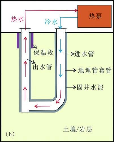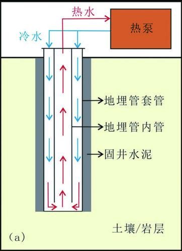 中深層地熱地埋管開發(fā)模式示意圖(a.直井同心管型;b.U型水平對接管型)