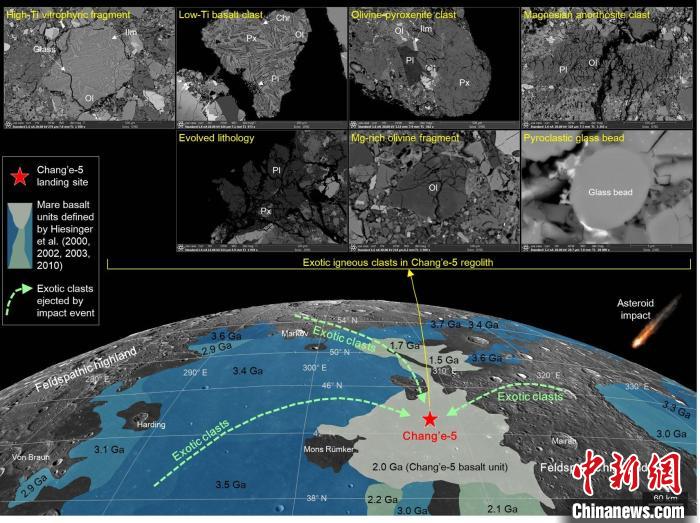 文章來源于:中國新聞網,原文鏈接:嫦娥五號樣品中外來巖屑指示月球上仍存在未被認識的地質單元