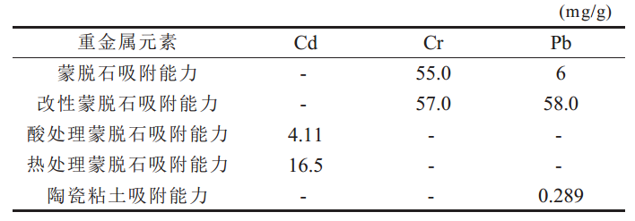 大量實(shí)驗(yàn)結(jié)果表明,在室溫和 pH=4 條件下,蒙脫石對(duì) Pb2+、Cd2+、Cr3+等重金屬離子的吸附率極高, 可達(dá)100%。