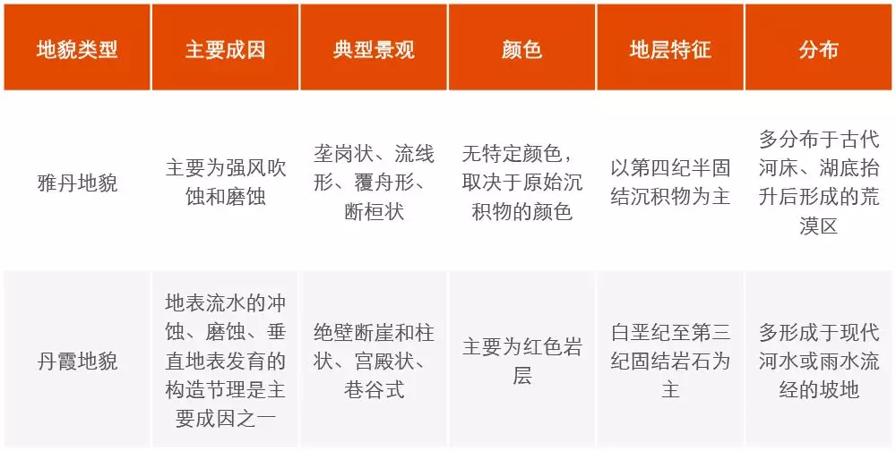 雅丹地貌與丹霞地貌的主要異同點(diǎn)