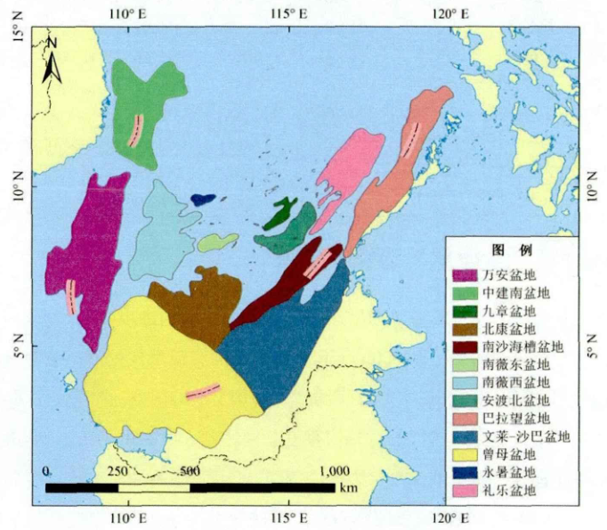 南海中南部海域主要油氣盆地