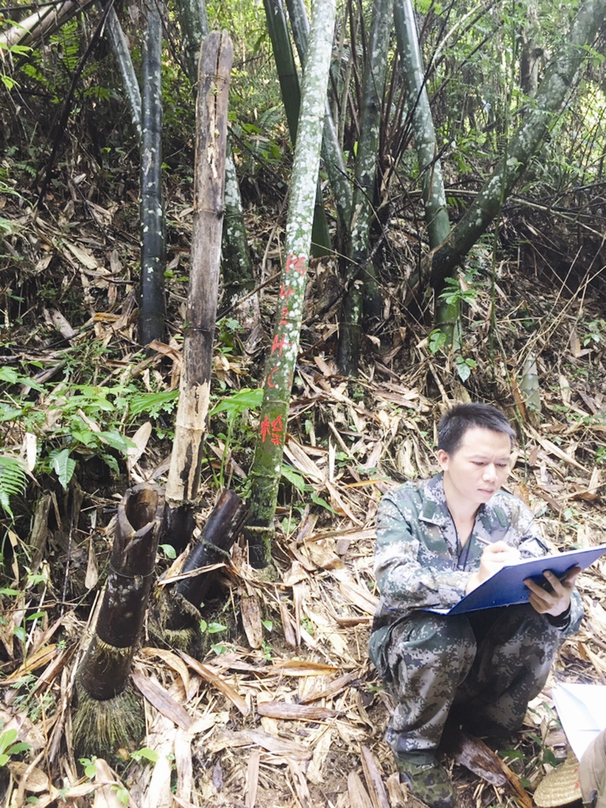 早上霧水很大,茫茫白霧擋住了遠(yuǎn)處的山,也遮住了前方的路,卻沒能擋住采樣工作人員前行的步伐。他們艱難地向目標(biāo)進(jìn)發(fā),直到太陽出來霧才散去,但沒一會(huì)兒,又曬得火辣,當(dāng)隊(duì)員們走進(jìn)深溝,因?yàn)橛忻艿臉淠竞屠p繞的老藤,有了片刻陰涼。