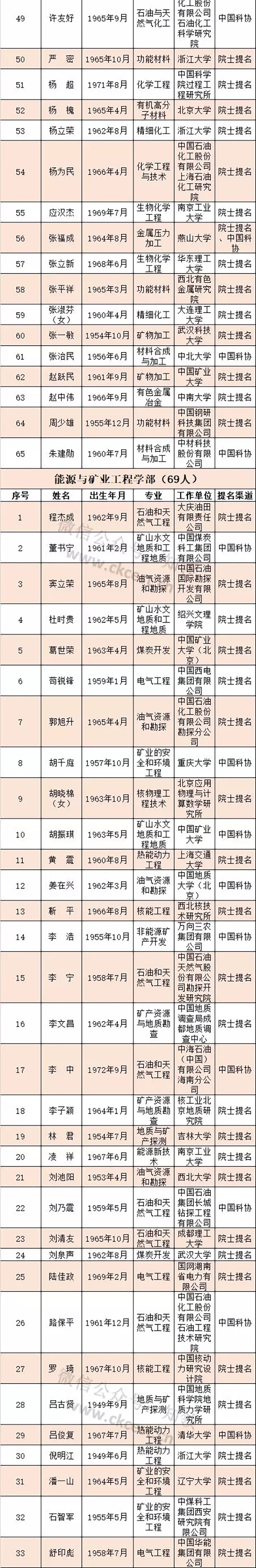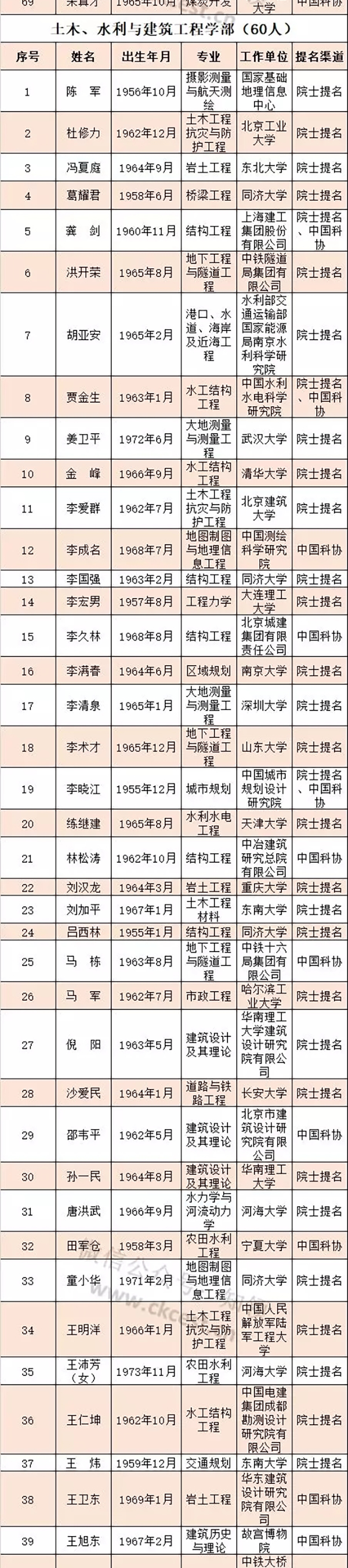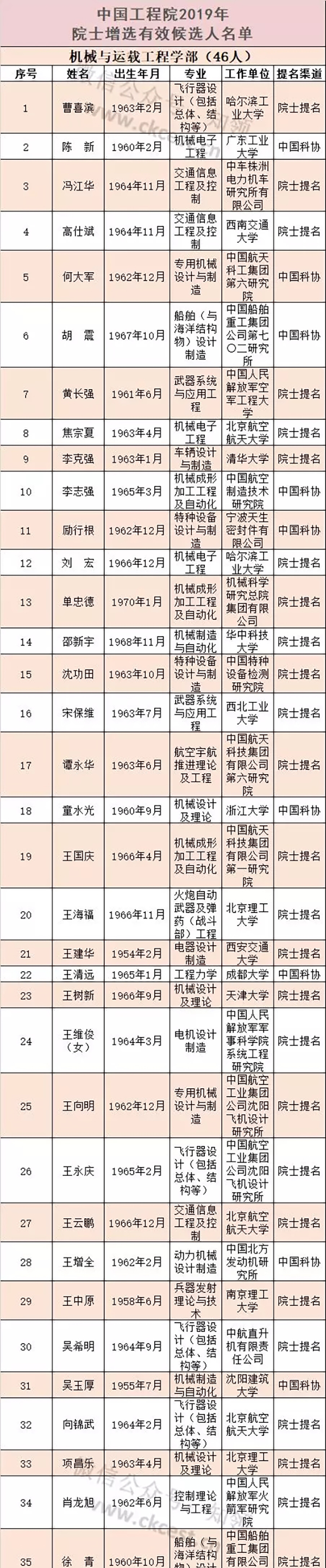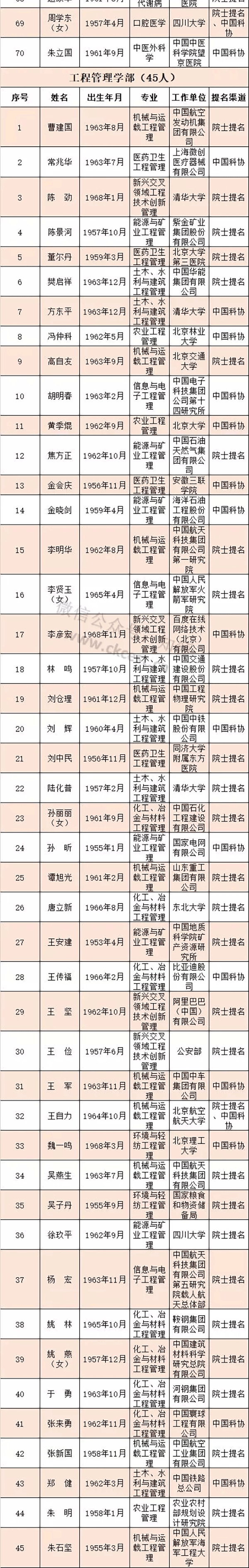 中國(guó)工程院2019年院士增選候選人提名工作于3月31日結(jié)束。根據(jù)《中國(guó)工程院院士增選工作實(shí)施辦法》的規(guī)定,現(xiàn)予以公布。具體名單如下: