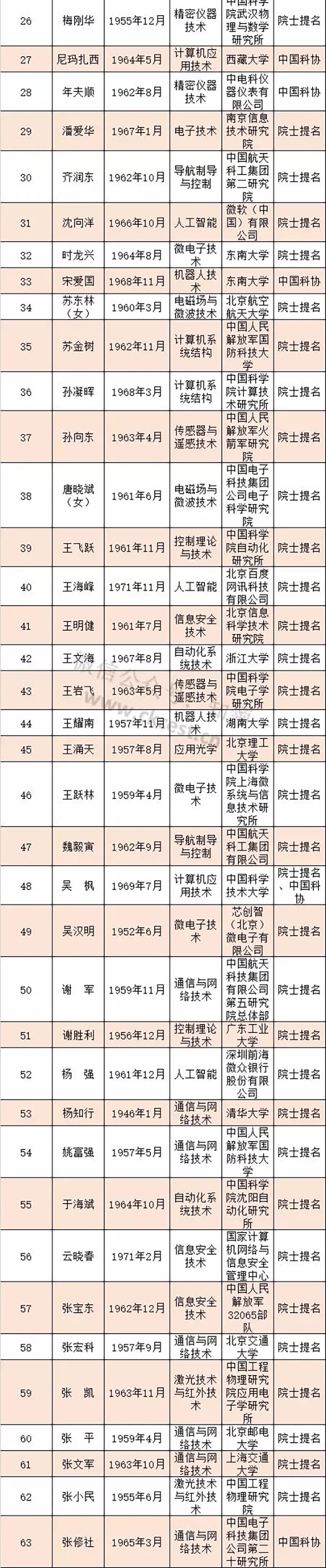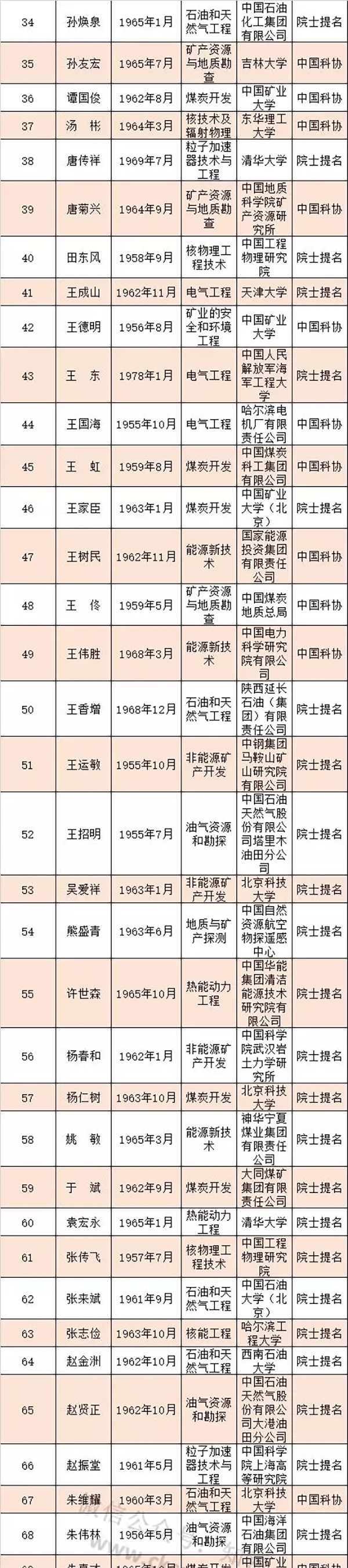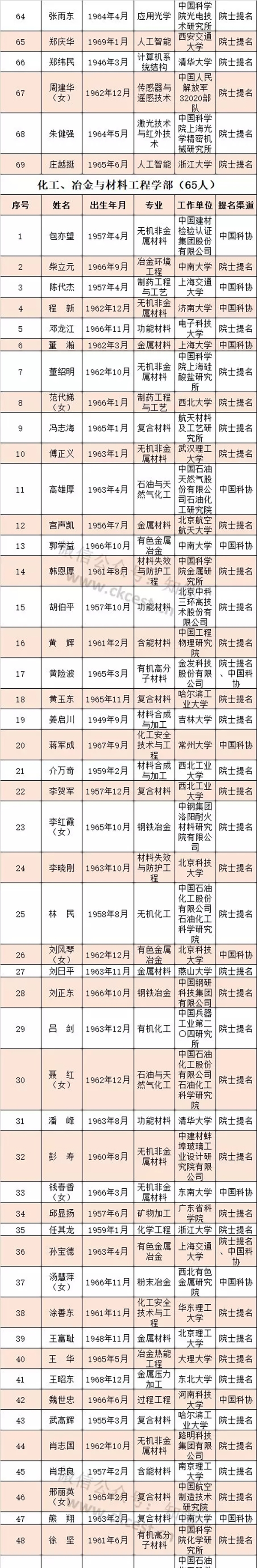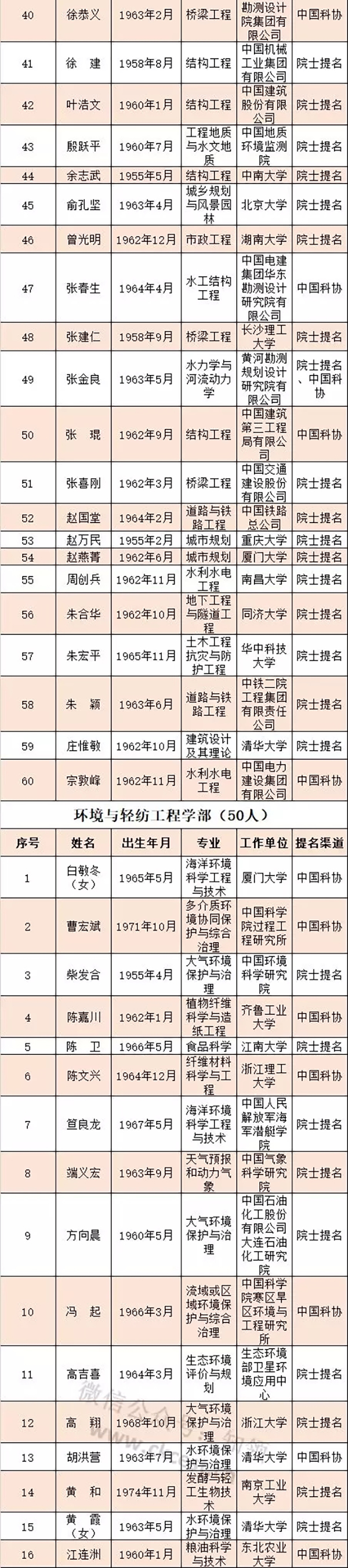 中國(guó)工程院2019年院士增選候選人提名工作于3月31日結(jié)束。根據(jù)《中國(guó)工程院院士增選工作實(shí)施辦法》的規(guī)定,現(xiàn)予以公布。具體名單如下: