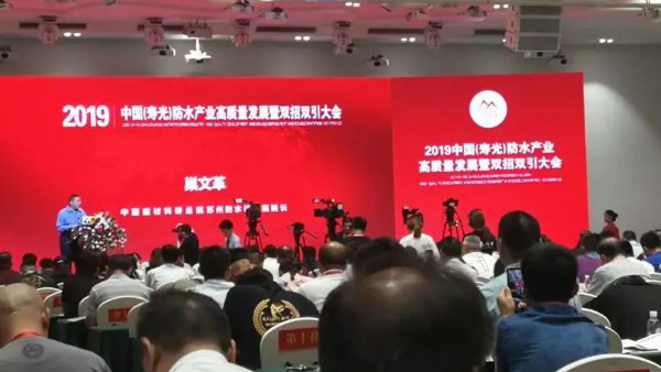 6月20日,由中國(guó)建筑防水協(xié)會(huì)、壽光市防水行業(yè)協(xié)會(huì)主辦的“2019中國(guó)(壽光)防水產(chǎn)業(yè)高質(zhì)量發(fā)展暨雙招雙引大會(huì)”在壽光市萬(wàn)華酒店舉行。中國(guó)建筑防水協(xié)會(huì)、中國(guó)建材科學(xué)研究總院蘇州防水研究院、國(guó)家建材工業(yè)建筑防水材料產(chǎn)品質(zhì)量監(jiān)督檢驗(yàn)測(cè)試中心、中國(guó)硅酸鹽學(xué)會(huì)房建材料分會(huì)防水保溫材料專(zhuān)委會(huì)、中建材蘇州非礦院防水設(shè)計(jì)研究所、臺(tái)灣營(yíng)建防水技術(shù)協(xié)進(jìn)會(huì)、韓國(guó)建筑施工學(xué)會(huì)、韓國(guó)首爾科技大學(xué)以及來(lái)自全國(guó)各地的行業(yè)協(xié)會(huì)、科研院校、新聞媒體、房地產(chǎn)商、原材料供應(yīng)商,加拿大、印度、泰國(guó)及港澳臺(tái)企業(yè)和協(xié)會(huì)全體會(huì)員單位等近千名嘉賓參會(huì)。