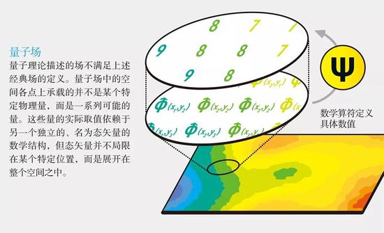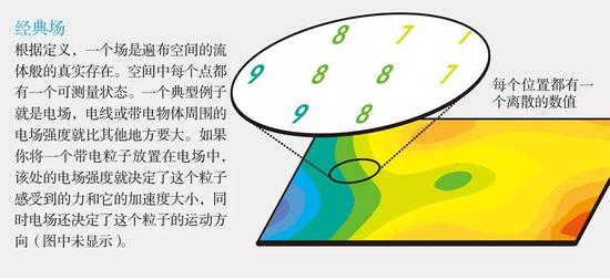 在經(jīng)典理論中,一種場(chǎng)代表了一個(gè)物理量在不同時(shí)空點(diǎn)上的值,比如溫度或電場(chǎng)強(qiáng)度。但對(duì)于量子場(chǎng),每個(gè)時(shí)空點(diǎn)代表的則是抽象的數(shù)學(xué)實(shí)體,代表的是你可以進(jìn)行測(cè)量的類型,而不是你想測(cè)量的結(jié)果。在量子場(chǎng)論中,的確有一些數(shù)學(xué)結(jié)構(gòu)代表物理量數(shù)值,但這些數(shù)值不是某個(gè)具體時(shí)空點(diǎn)上的值,而是一些不確定區(qū)域的值。
