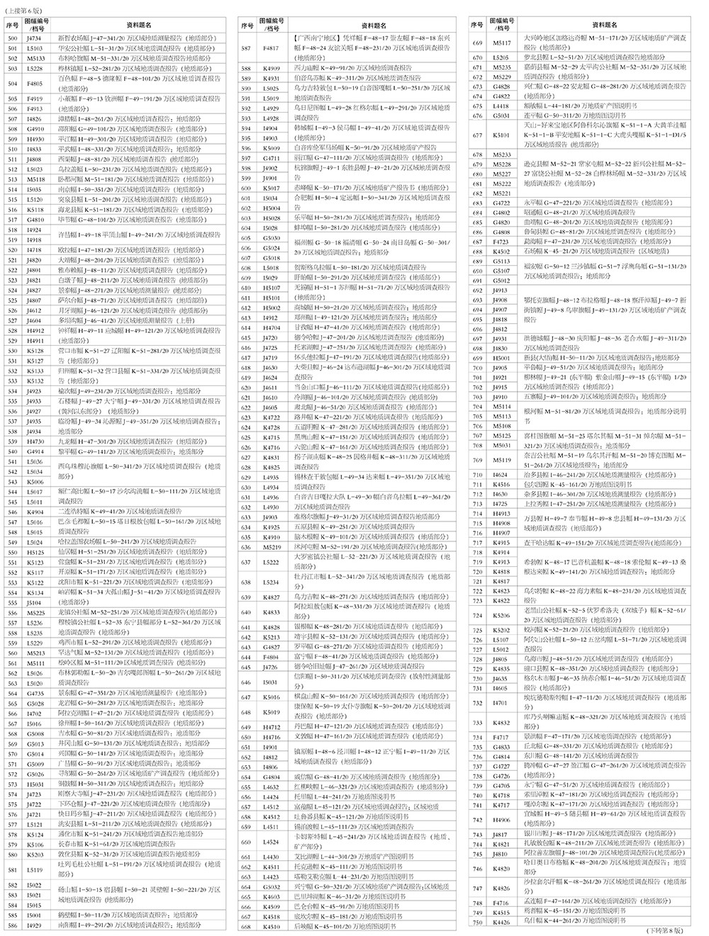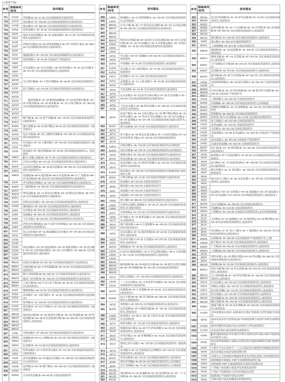 依據(jù)現(xiàn)行國(guó)家秘密事項(xiàng)目錄及規(guī)定程序,全國(guó)地質(zhì)資料館對(duì)部分館藏地質(zhì)資料進(jìn)行了公開(kāi)化處理,形成了1013份公開(kāi)版地質(zhì)調(diào)查成果資料,特此公示。