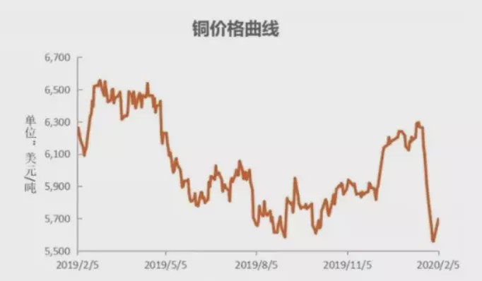 礦產(chǎn)品價(jià)格是對(duì)礦業(yè)市場(chǎng)的晴雨表,疫情發(fā)生后,市場(chǎng)避險(xiǎn)情緒急劇升溫,投資者對(duì)于后市需求的預(yù)期趨向悲觀,股市期市出現(xiàn)了顯著的下跌。可以看到,疫情已經(jīng)對(duì)銅價(jià)產(chǎn)生了較大的影響,春節(jié)期間倫銅連跌6個(gè)交易日,跌幅8.28%,滬銅節(jié)后開盤一度跌停,盤中最低至44680元/噸,刷新近30個(gè)月低位,較節(jié)前收盤價(jià)下跌6.96%。