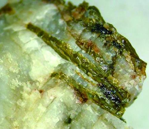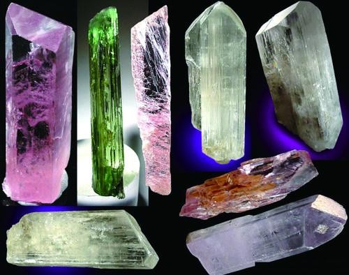 鋰輝石,化學(xué)成分LiAl[Si2O6]。一般Li2O含量7%左右;晶體呈柱狀、板狀、針狀,顏色可呈無色、灰白、淡紫、淡綠、淡黃、寶石綠色;條痕白色;摩式硬度6.5-7;比重3.03-3.22。