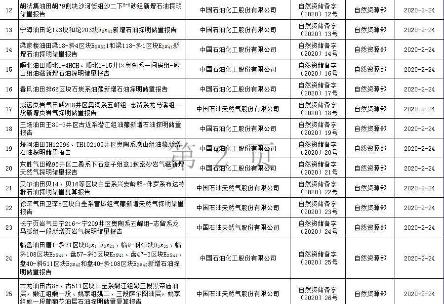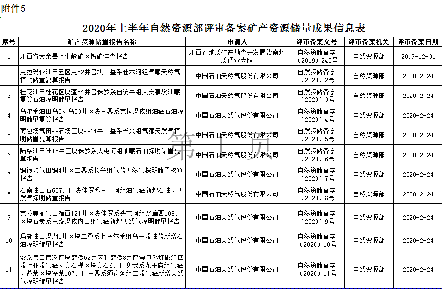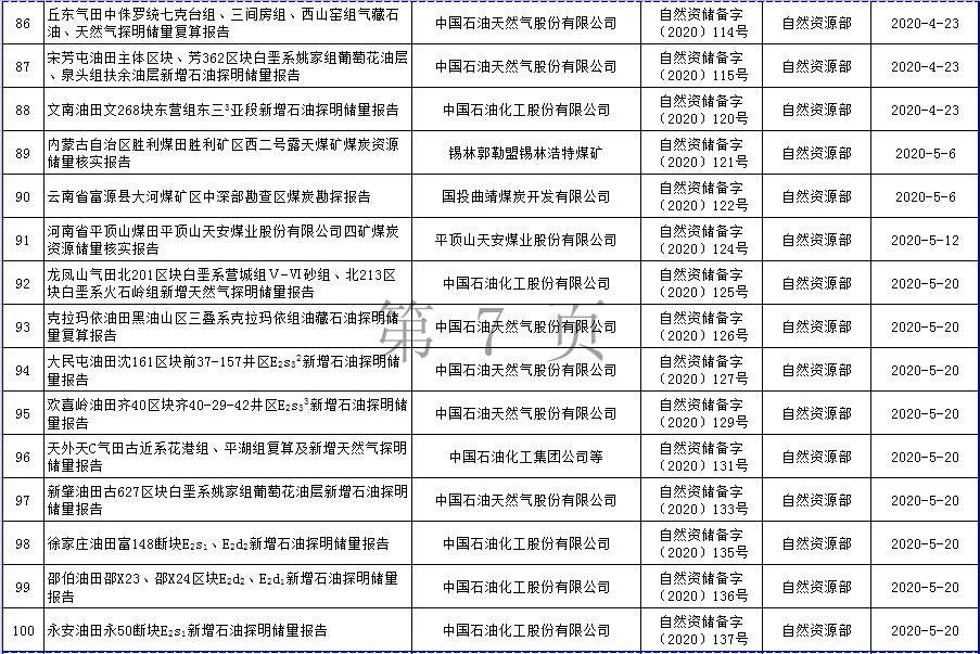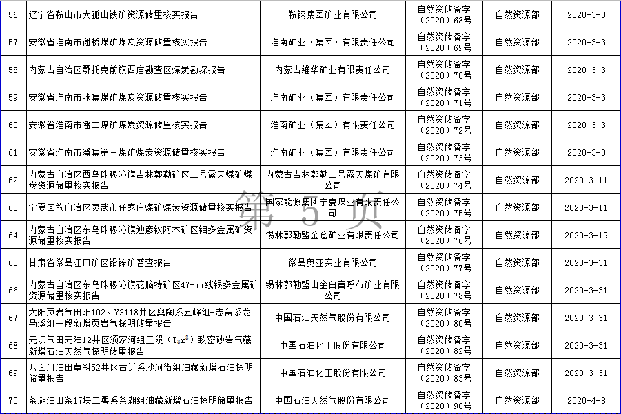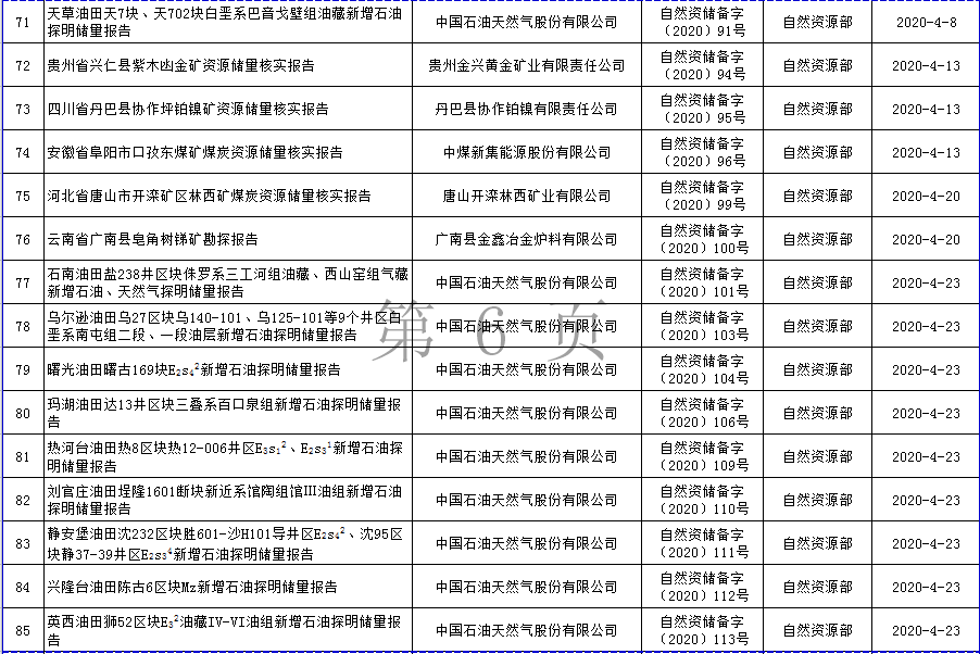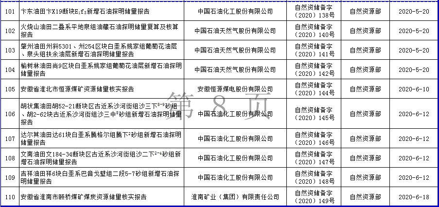 根據(jù)《自然資源部辦公廳關(guān)于礦產(chǎn)資源儲量評審備案管理若干事項的通知》(自然資辦發(fā)〔2020〕26號)的要求,自然資源部2020年上半年符合發(fā)布要求的礦產(chǎn)資源儲量報告共計110份,現(xiàn)將有關(guān)信息予以發(fā)布。
