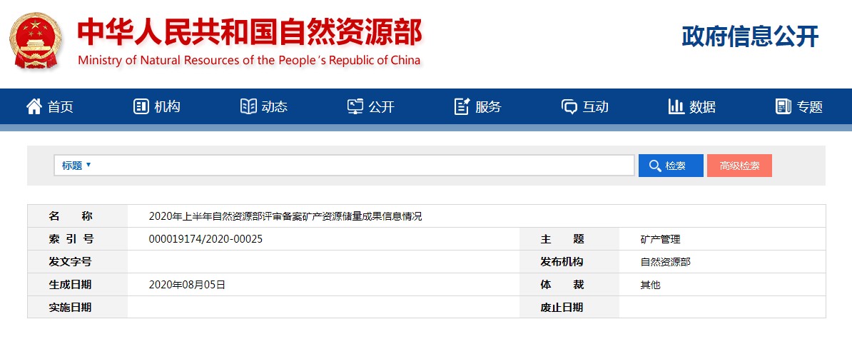 礦產(chǎn)資源儲量成果信息情況