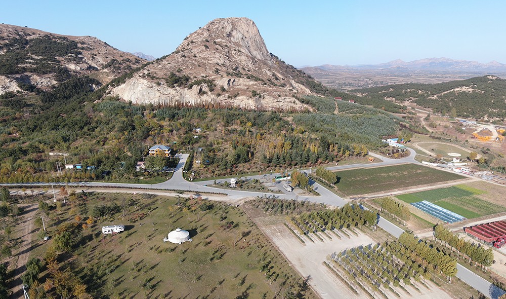 從平度市中心驅(qū)車,沿東北方向前行不到2千米,迎面而來的是一條綠蔭鋪地、花香四溢的寬闊水泥公路。公路兩邊一排排的樹木,像迎賓的禮儀小姐頷首致意;樹林間錯落有致、多種多樣的植物景觀,還有幾塊造型別致的假山石,讓人不由得產(chǎn)生了進入了一個度假公園的錯覺。