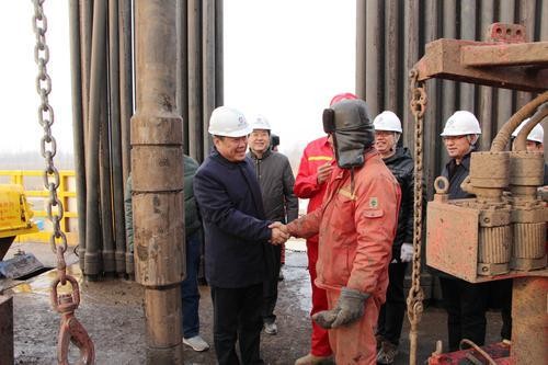 盧瑞卿(左一)慰問(wèn)河北省地礦局雄安新區(qū)地?zé)豳Y源勘查施工人員