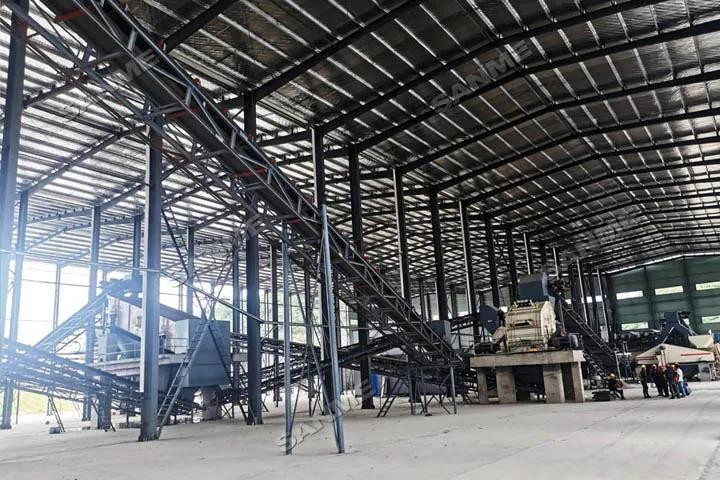 項(xiàng)目年設(shè)計(jì)處理量為100萬(wàn)噸,由上海山美股份提供完整解決方案和全套建筑固廢處理裝備。項(xiàng)目采用“顎破+反擊+反擊”三段一閉路破碎篩分工藝和“磁選+風(fēng)選+水選”三級(jí)分選流程,全封閉生產(chǎn)車間,可有效降噪、防塵,綠色環(huán)保。