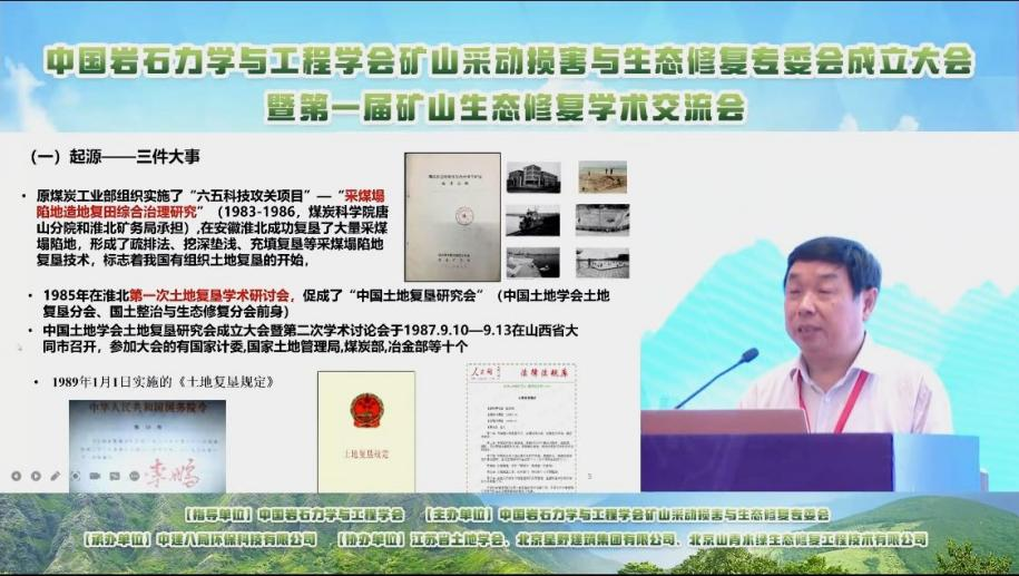 何滿潮、宋振騏、胡振琪等專家學(xué)者分別圍繞“無公害生態(tài)采煤新技術(shù)”“新時代的特征和工程學(xué)子的光榮使命”“礦山生態(tài)修復(fù)回顧與展望”等作專題報(bào)告。中國地調(diào)局地質(zhì)環(huán)境檢測院、自然資源部采煤沉陷區(qū)綜合治理工程技術(shù)創(chuàng)新中心、中國林業(yè)與環(huán)境促進(jìn)會綠色礦山推進(jìn)會等有關(guān)部門和行業(yè)協(xié)會負(fù)責(zé)人就我國廢棄礦山生態(tài)修復(fù)工作情況和礦山生態(tài)修復(fù)政策進(jìn)行解讀和探討。中建八局環(huán)科公司、中建八局總承包公司等單位聚焦礦山修復(fù)的典型案例、關(guān)鍵技術(shù)及應(yīng)用,對礦山修復(fù)的探索實(shí)踐作深度報(bào)告。