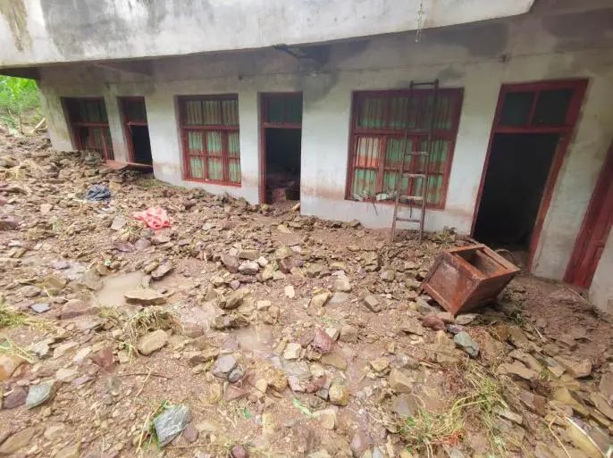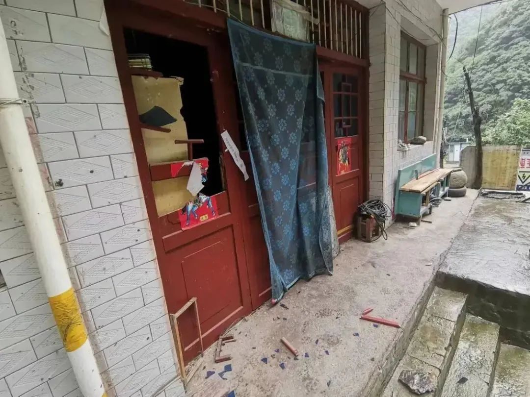 落石砸毀村民房門