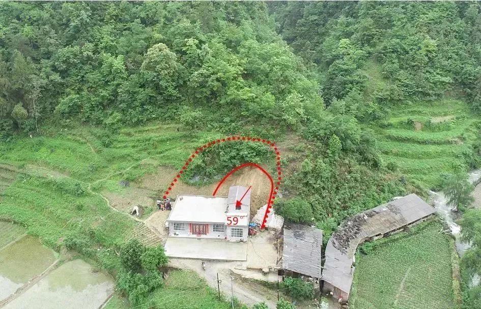 2023年6月21日12時,小洋鎮(zhèn)政府工作人員在進行雨后核查時,發(fā)現(xiàn)村民劉永安屋前坡體上有石塊滾落,考慮坡體上還有大量崩積巨石,判斷此處有崩塌風險,立即組織人員撤離。16時50分,坡體上發(fā)生崩塌,四塊直徑2-3m巨石滾落至劉永安屋內(nèi),造成房屋損毀12間,直接經(jīng)濟損失140萬元。由于預警撤離及時,成功避免了1戶2人傷亡。依據(jù)《陜西省地質(zhì)災害成功預報獎勵規(guī)定》,該起成功預報獎勵等級為集體四等獎。