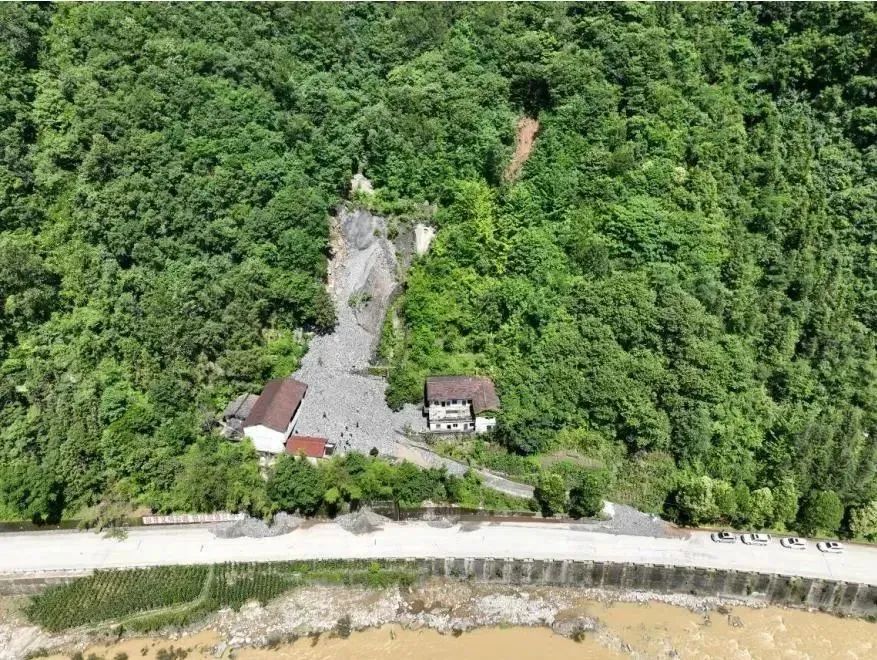 2023年7月1日,漁渡鎮(zhèn)發(fā)生特大暴雨,晚20時,漁渡自然資源所同志在雨中巡查時發(fā)現(xiàn)馬啟超屋前坡體上有掉塊現(xiàn)象,考慮溝道內(nèi)有盜采礦渣,可為泥石流提供物源,結(jié)合當前雨情判斷此處泥石流風險高,立即組織人員撤離至花果村委會,晚22時許,該處發(fā)生泥石流,沖出方量約0.6×104m³,造成房屋損毀12間,直接經(jīng)濟損失60萬,由于預警撤離及時,成功避免了2戶4人傷亡。依據(jù)《陜西省地質(zhì)災害成功預報獎勵規(guī)定》,該起成功預報獎勵等級為集體三等獎。