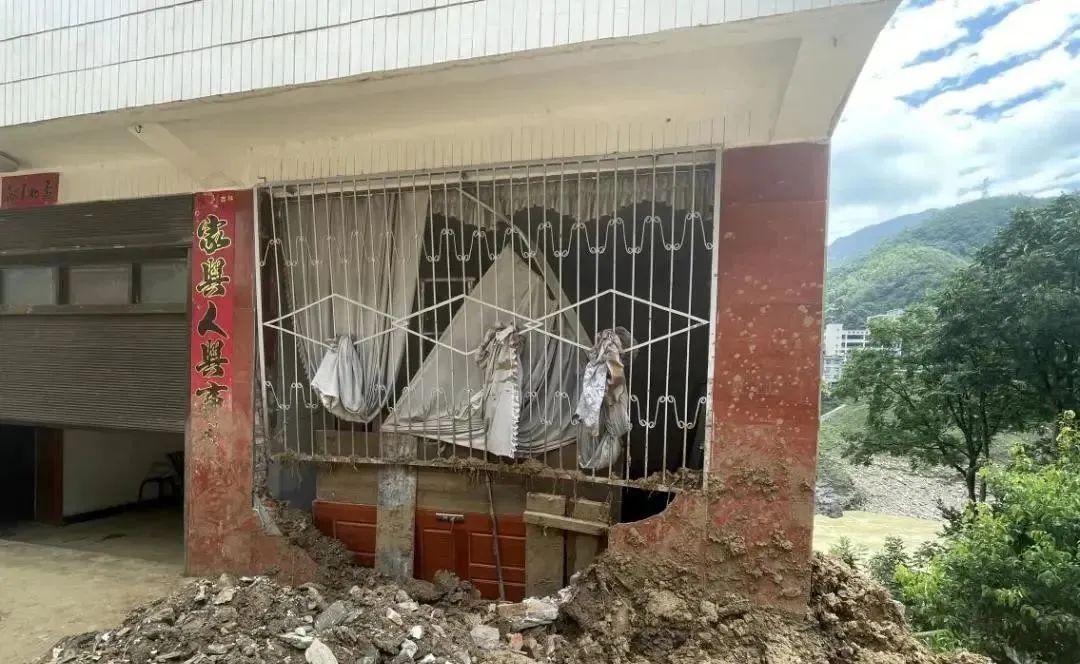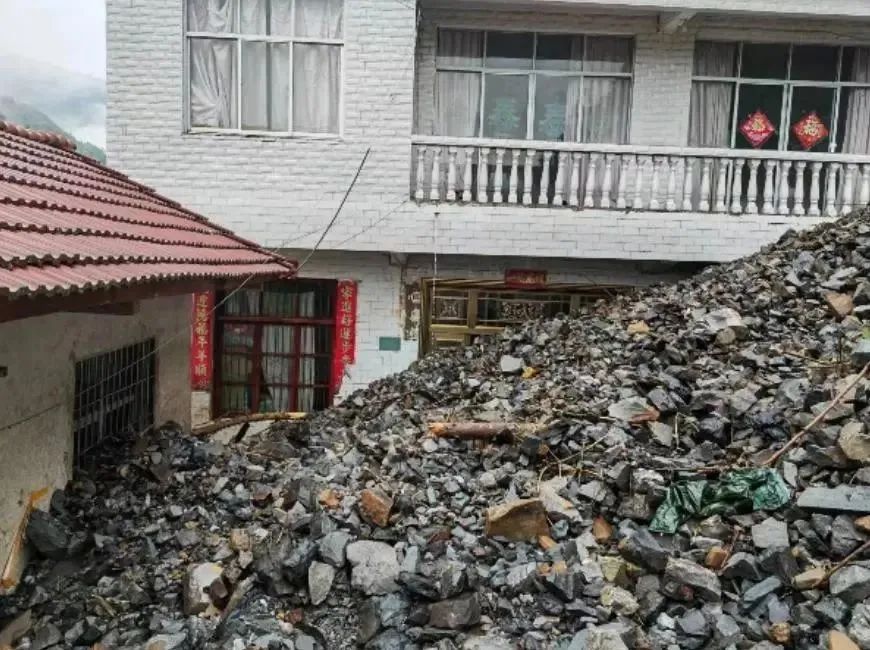 滑體涌入房屋后方墻體