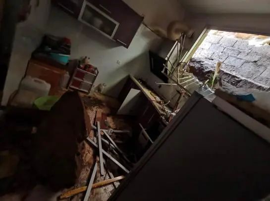 落石滾入屋內(nèi)