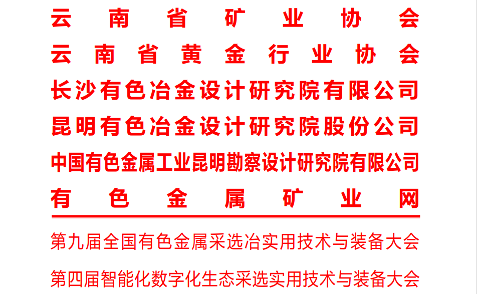 五、主辦單位:云南省礦業(yè)協(xié)會,云南省黃金行業(yè)協(xié)會,長沙有色冶金設(shè)計 研究院有限公司,昆明有色冶金設(shè)計研究院股份公司,中國有色金屬工業(yè) 昆明勘察設(shè)計研究院有限公司,有色金屬礦業(yè)網(wǎng)。