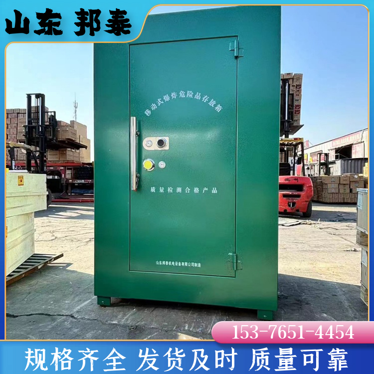 3、山東邦泰機電設(shè)備有限公司生產(chǎn)的的防爆柜及炸藥庫經(jīng)過近十年的實踐及市場應(yīng)用,該公司產(chǎn)品爆炸危險品存放柜依照其功能作用于火工品等危險物品的存儲,其外層為6-8mm淬火加工防爆鋼板,內(nèi)層附由10mm絕緣木板以及2mm防靜電阻燃?xì)帧M瑫r根據(jù)相關(guān)部門的防盜要求,成功實現(xiàn)雙鎖聯(lián)動功能。外觀大方并經(jīng)久耐用,門框為加厚鋼質(zhì)內(nèi)折門框,門面為高質(zhì)量表面處理,經(jīng)過了精心的磷化處理,使其更具耐腐蝕性,進(jìn)口噴涂流水線,高壓靜電粉體噴涂,高溫烘烤使產(chǎn)品色澤光亮,附著力強。超厚門扇,雙重防撬扣邊,防撬、防盜。并且具備各種安檢資質(zhì),是優(yōu)良的炸藥保管庫的生產(chǎn)廠家,而且可以根據(jù)客戶的要求進(jìn)行定制。