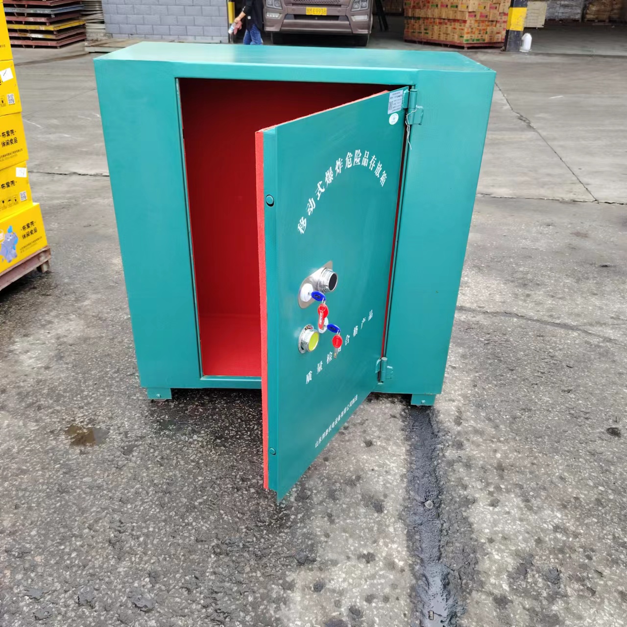 2、防雹彈保管柜采用6mm厚鋼板,內(nèi)置防靜電木板,里面鋪設(shè)防靜電阻燃?xì)。地腳帶有輪子和接地線。可移動(dòng)式爆炸危險(xiǎn)品存放箱公安檢驗(yàn)報(bào)告,和防靜電墊的檢驗(yàn)報(bào)告,防爆檢測(cè)報(bào)告等證件,保障箱子本身的功能。