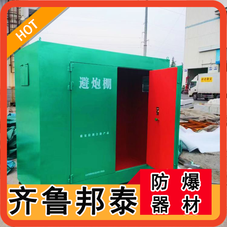 移動(dòng)避炮棚,也叫爆破防護(hù)屋,是本公司采用1.0cm厚左右的冷軋鋼板焊接而成,內(nèi)部是10mm絕緣木板以及防靜電阻燃?xì)。避炮棚兩?cè)開有觀察窗口,窗口用防護(hù)網(wǎng)封住,能有效的避免蟲蟻進(jìn)入。