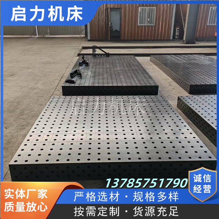 三維柔性焊接平臺(tái)通過(guò)“模塊化快重構(gòu)”輕松應(yīng)對(duì):平臺(tái)配套的標(biāo)準(zhǔn)模塊(方箱、角尺、支撐塊)可組合,換產(chǎn)時(shí)只需松開(kāi)快鎖緊銷(xiāo)(1分鐘/個(gè)),按新工件圖紙擺放模塊,再用定點(diǎn)銷(xiāo)固定(定點(diǎn)精度±0.05mm),15-30分鐘即可完成換產(chǎn)。新能源汽車(chē)廠用平臺(tái)后,單日換產(chǎn)次數(shù)從2次增至10次,多品種復(fù)雜訂單交付周期縮短40%。