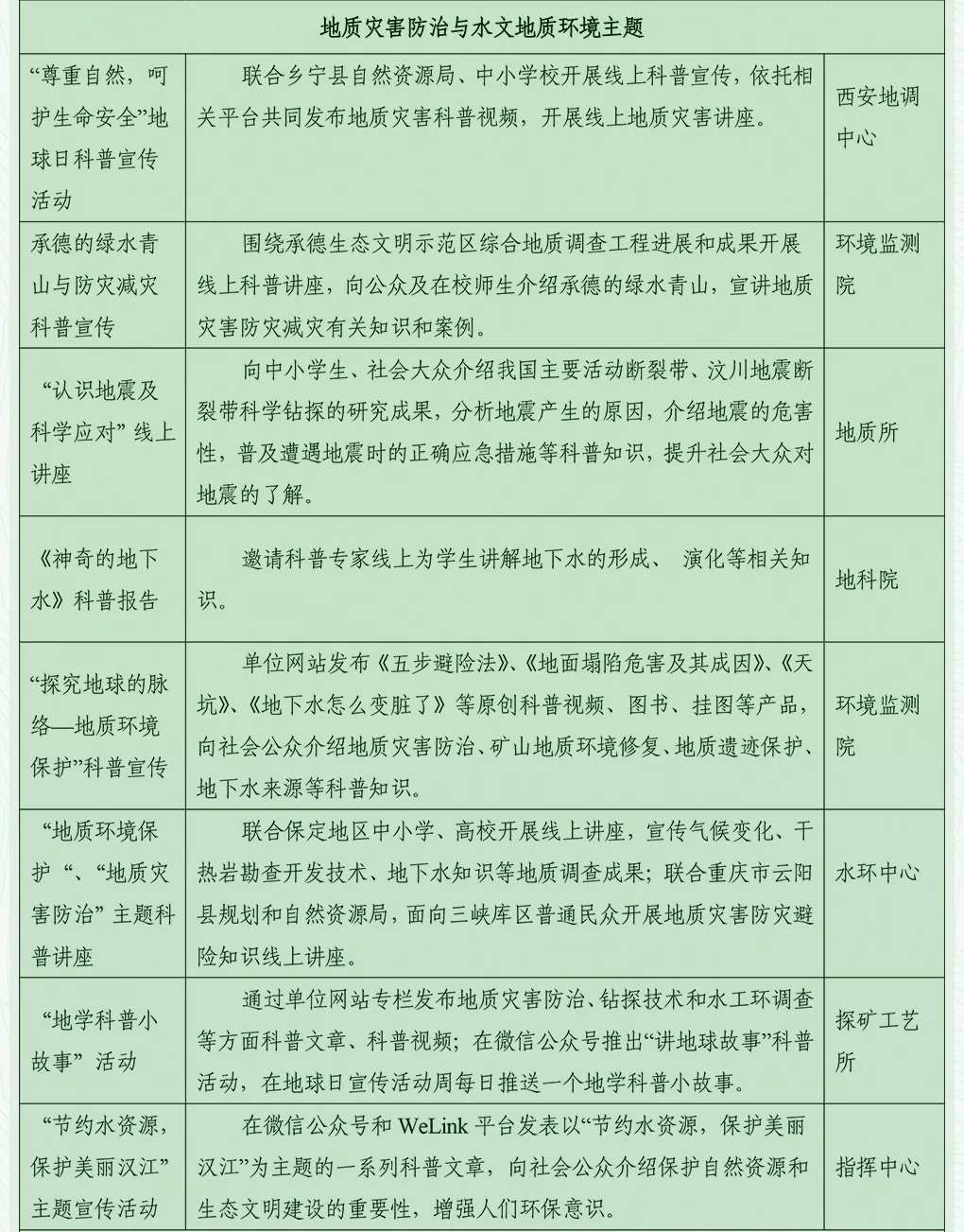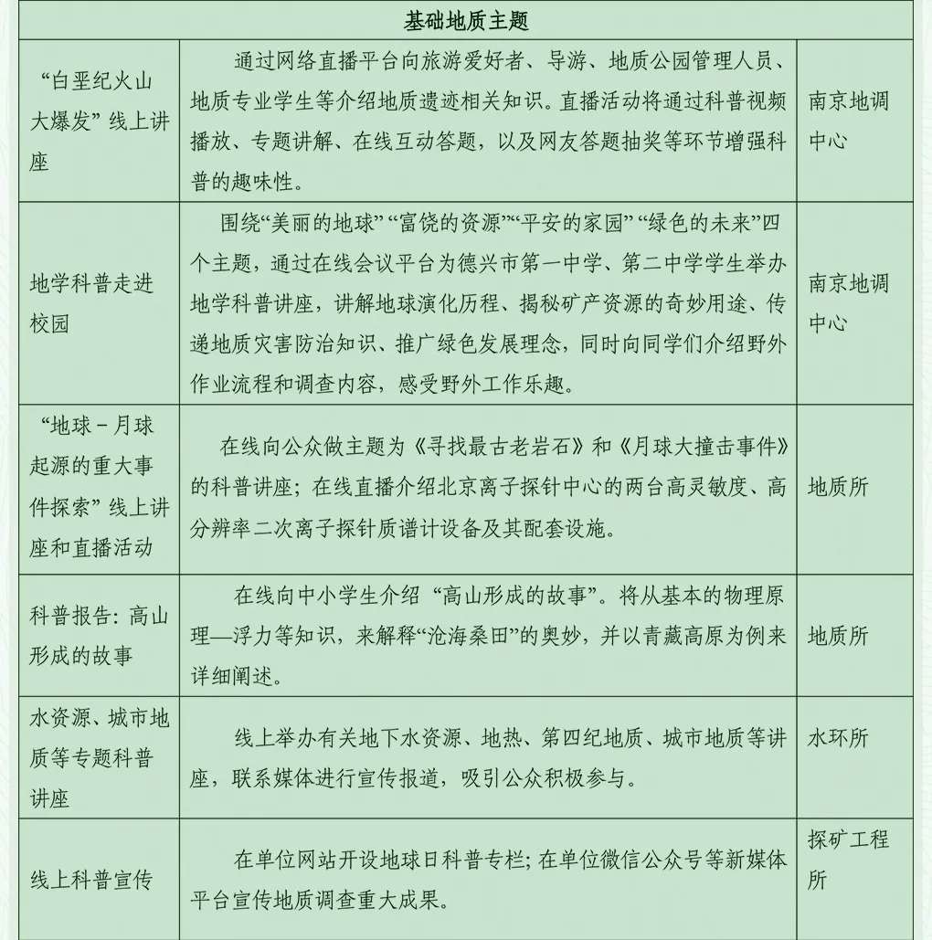 2020年4月22日是第51個世界地球日,主題為“珍愛地球 人與自然和諧共生”。為貫徹提出的“科技創(chuàng)新、科學(xué)普及是實(shí)現(xiàn)創(chuàng)新發(fā)展的兩翼”重要指示精神,自然資源部中國地質(zhì)調(diào)查局結(jié)合各地區(qū)疫情防控要求和實(shí)際情況,圍繞宣傳主題和局中心工作,積極開展地球日主題宣傳活動。