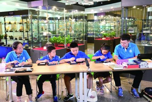 “地球形成之初,地核的引力把宇宙中的塵埃吸引過來,凝聚形成山石,經(jīng)過風(fēng)化,變成了巖石……”隨著實物資料中心教授級高工蘇桂芬的講解,參加《走進(jìn)巖石3+3+3》科學(xué)實驗課堂的同學(xué)們逐漸了解了巖石的成因、分類及其特點等知識。